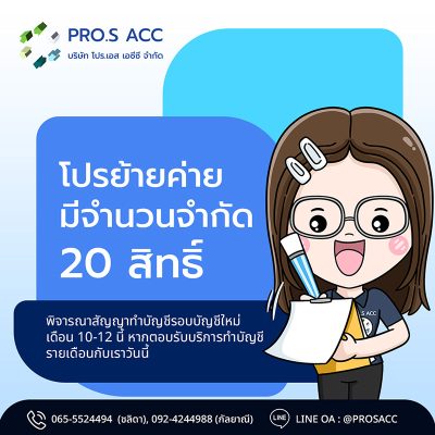 เกี่ยวกับ PRO.S ACCเป็นสำนักงานบัญชีที่มีคุณภาพ ดำเนินธุรกิจมายาวนาน ให้บริการด้าน รับทำบัญชี รับตรวจสอบบัญชี รับวางระบบบัญชี และดูแลภาษีอากร บริหารงานโดยผู้ตรวจสอบบัญชีรับอนุญาตและทีมงานนักบัญชีมืออาชีพที่มีประสบการณ์สูง